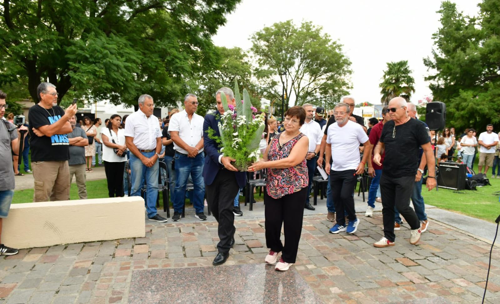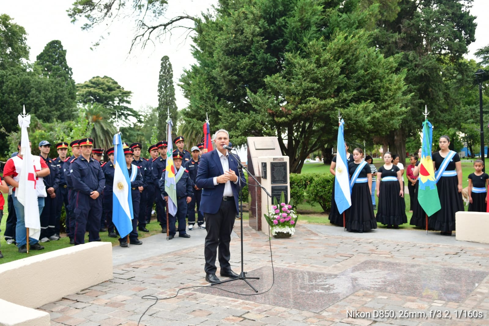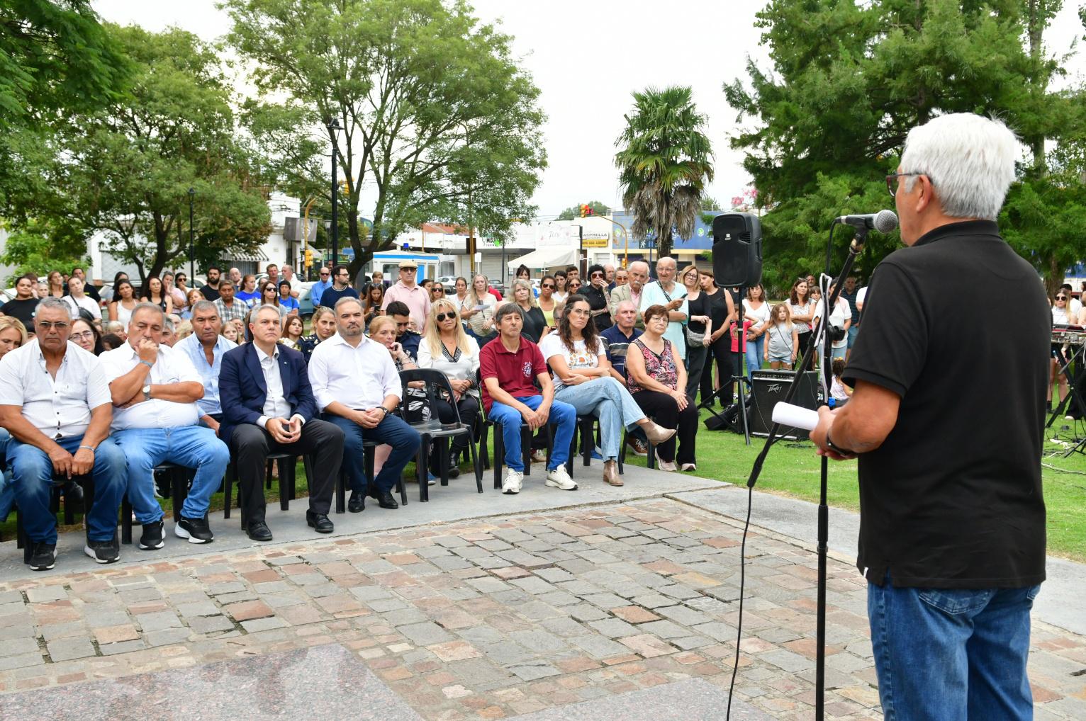El acto fue abierto por el ex combatiente Mario Feroldi, quien se mostró profundamente emocionado al entonar el Himno Nacional Argentino. En sus palabras, reafirmó que las islas son argentinas y destacó la importancia de continuar el reclamo por la vía diplomática, compartiendo además su experiencia en la línea de combate.