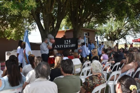 “Nosotros creemos que la educación debe ser para todos, haya un alumno, diez, cien o los que sean. Tenemos que trabajar para sostener nuestro sistema educativo a lo largo y ancho de nuestra Patria, de nuestra provincia y de nuestro Chacabuco. Es una alegría poder estar acá celebrando el 125º aniversario. Felicitarla a Luciana, a todos los docentes, y uno no puede dejar de emocionarse cuando escucha las palabras de la comunidad que forma parte de la historia de esta Escuela”, indicó Golía en el comienzo de su alocución.