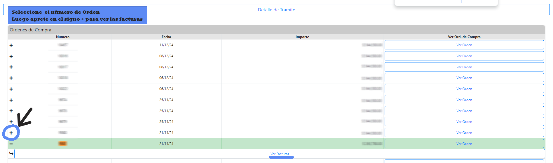 La primera imagen se muestra como ver la factura seleccionándola, una vez seleccionada haga clic en el signo más y le aparecerá una nueva opción VER FACTURA